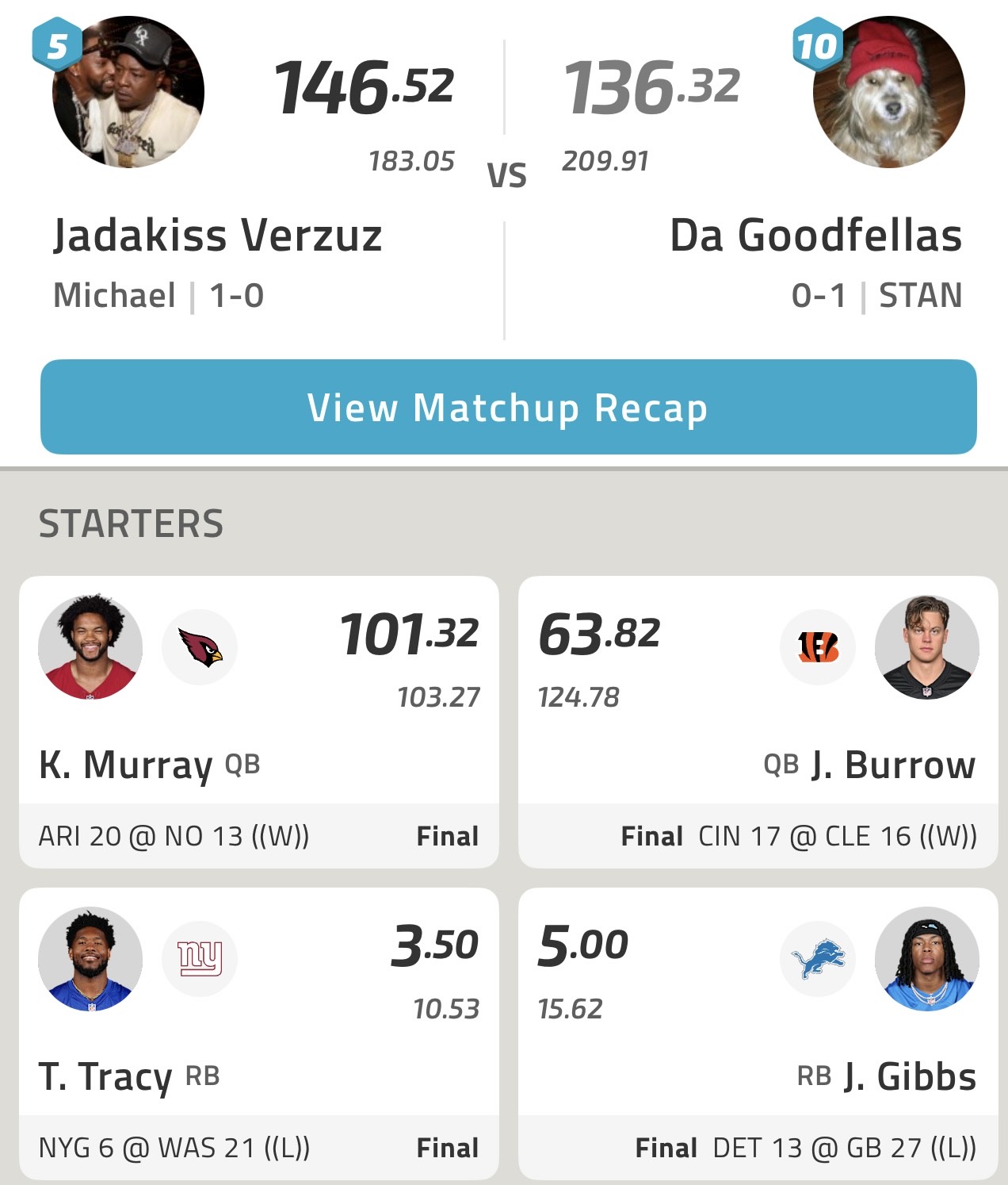 Dear Kyler Murray, last week my fantasy team beat the crap out of my opponent all because of you. I had Jalen Hurts on my bench (final fantasy score of 99 points). I thought I messed up. You proved me wrong. I will never doubt you again, Kyler Murray. At least not this week.